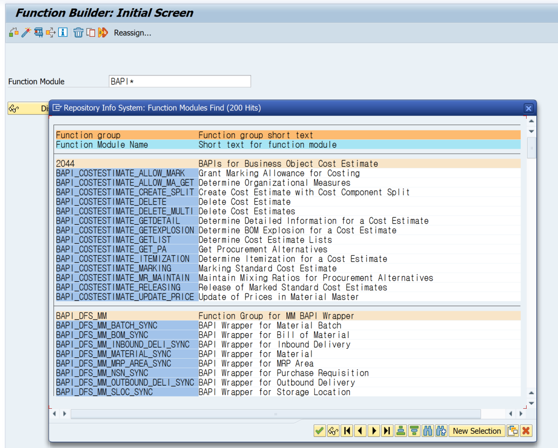 3. Transaction "BAPI" 를 보면 SAP 에서 제공하는 BAPI Function 내역과 Parameter 에 대한 설명들이 있습니다.