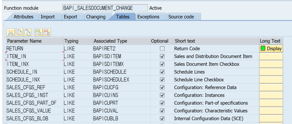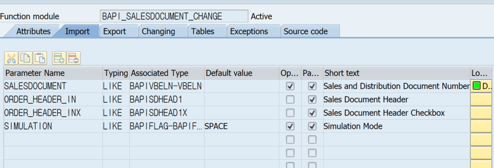 BAPI_SALESDOCUMENT_CHANGE의 IMPORT/TABLES를 한번 보도록 하자.