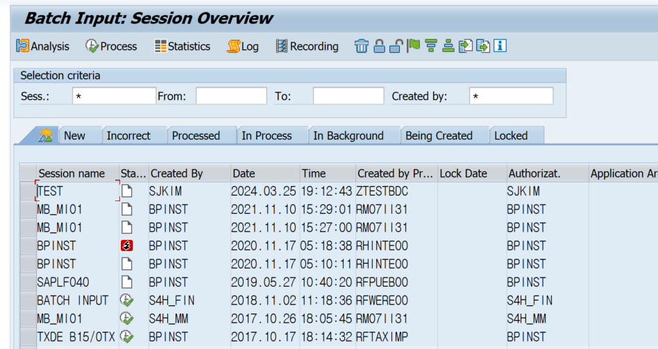TCODE : SM35에서 실행
