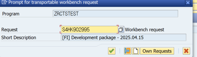 프로그램 생성 시, Own resquest 클릭 -> CTS 생성 혹은 이미 생성된 CTS에 연결